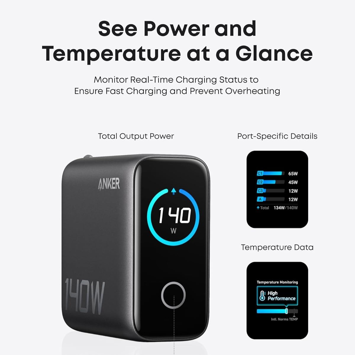 Anker Laptop Charger 140W, 4-Port, PD 3.1 with Touch Control, USB-C Cable (B2697)