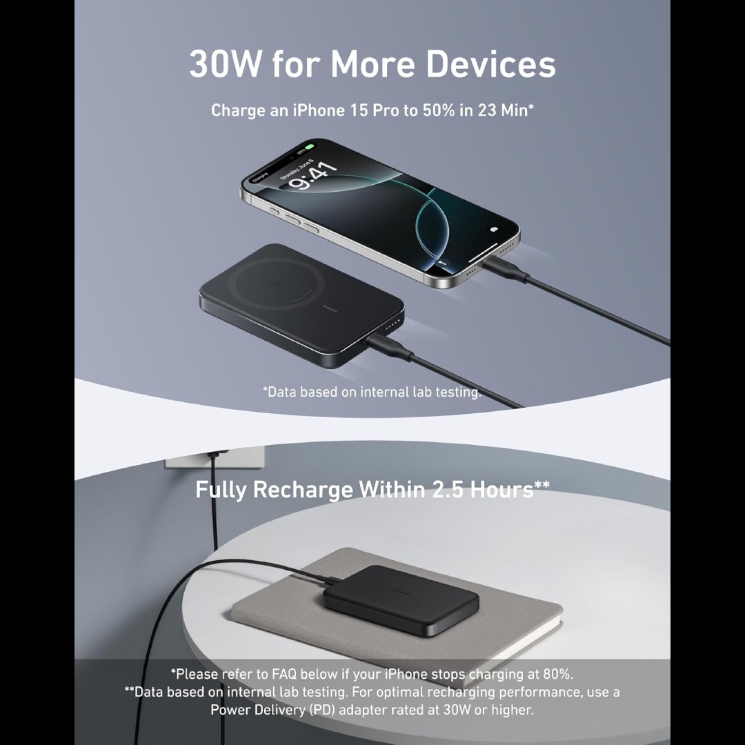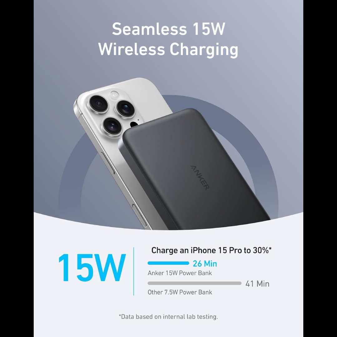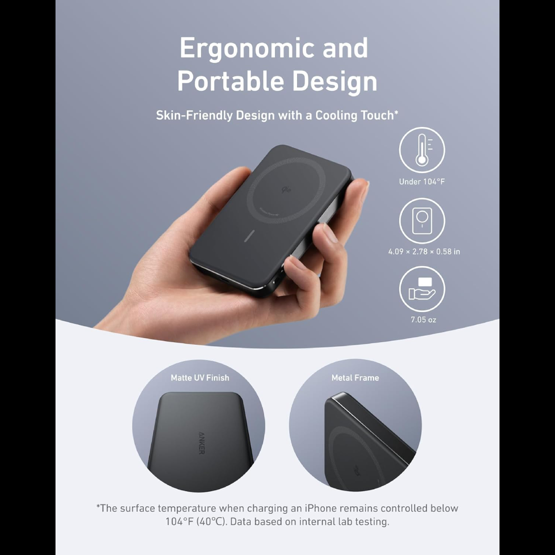 • Ultra-Slim Magnetic Design – Only 0.58 × 2.78 × 4.09 inches, delivering maximum portability with Anker’s slimmest MagGo power bank to date