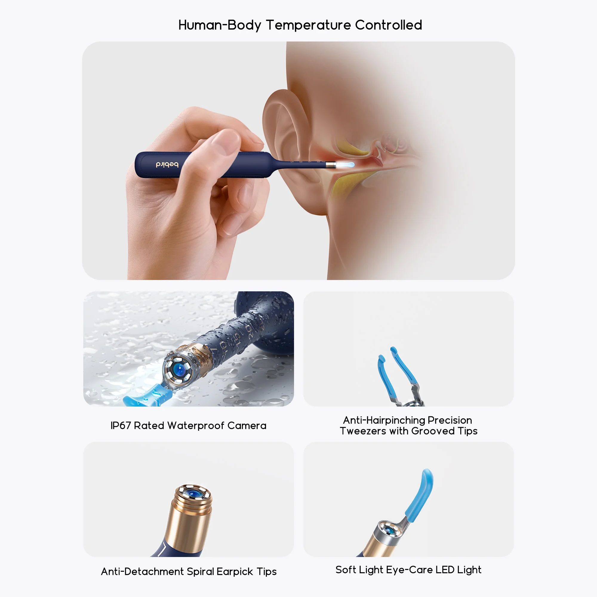 Experience a new level of ear hygiene with the Bebird EarSight Plus Smart Visual Ear Cleaner Camera, a state-of-the-art ear cleaning tool that combines advanced technology with user-friendly design. Featuring a high-definition 10-megapixel camera and six integrated LED lights, this device provides a clear, real-time view of your ear canal, allowing for precise and safe earwax removal. The flexible, bendable lens adapts to the natural curves of your ear, ensuring comfort and effectiveness during use.