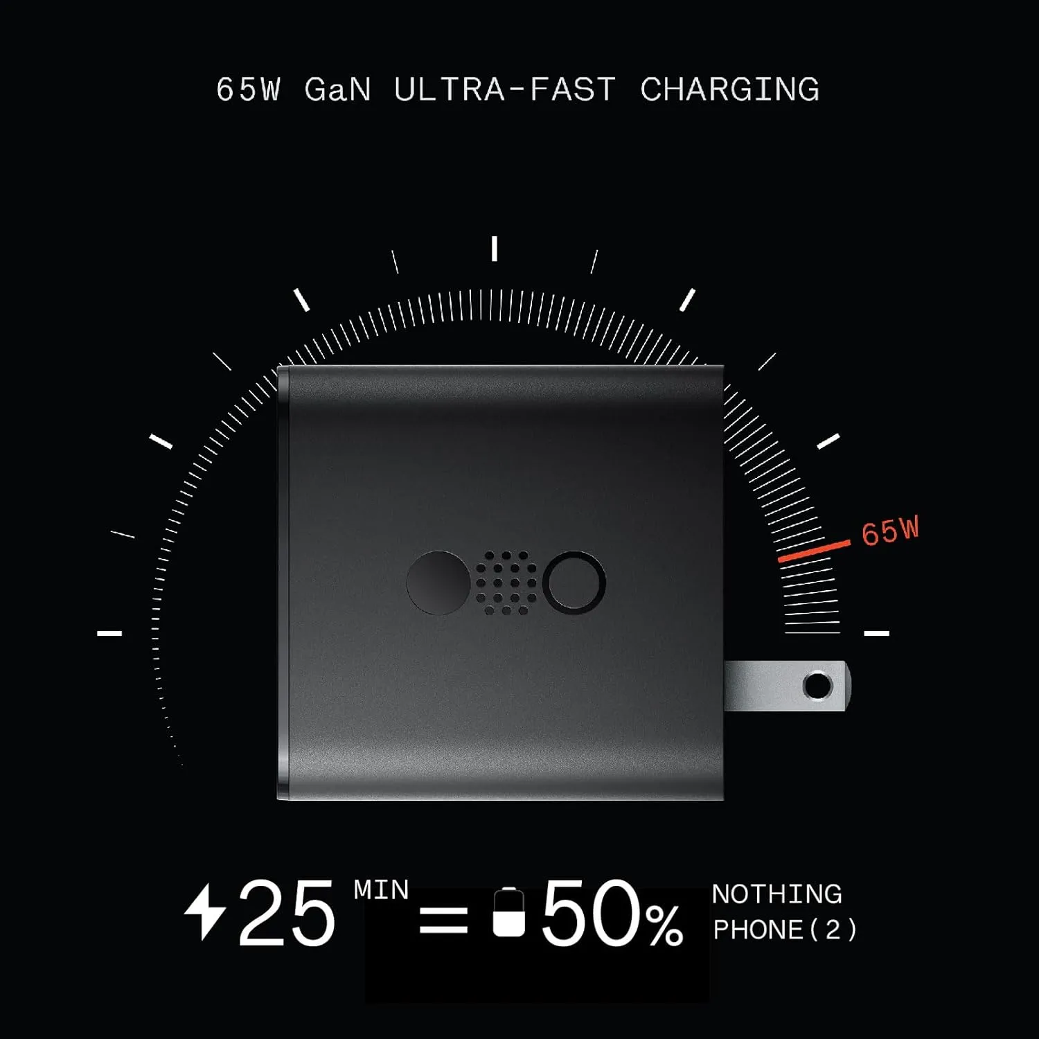 - 65W GaN Ultra Charging: CMF by Nothing power powered by the latest GaN technology for the fastest, safest and most energy efficient charging experience. Featuring robust thermal conductivity and high-temperature resistance. It works hand-in-hand with a chip that can intelligently adjust voltage and current. The result is a powerhouse that can charge the Nothing Phone (2) smartphone up to 50 percent within 25 minutes.
