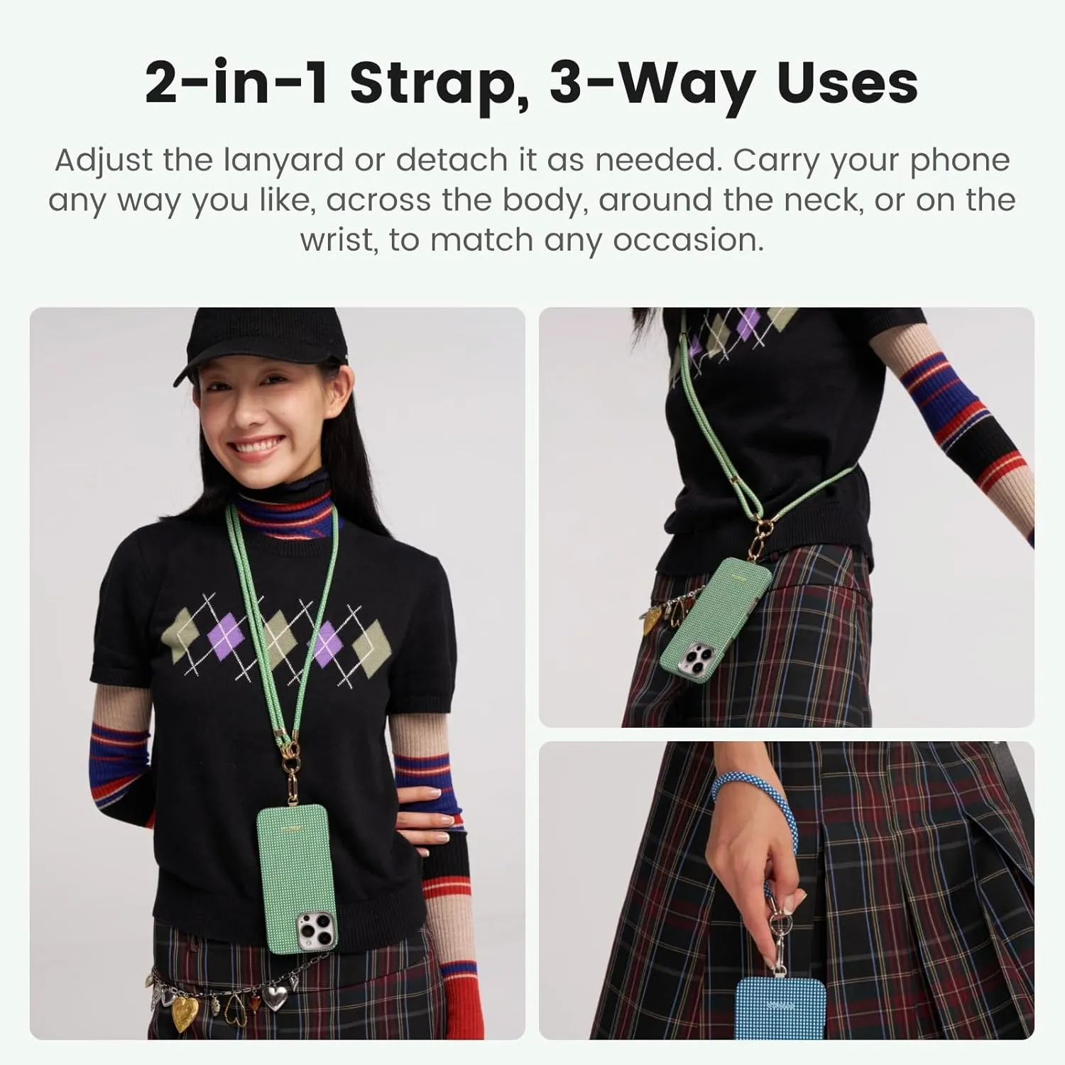 - 1 to 3 Phone Strap: Adjust the phone lanyard to the right length as needed. Carry your phone any way you like, as phone lanyard crossbody, phone lanyard wrist, and phone neck lanyard, to match any occasion.