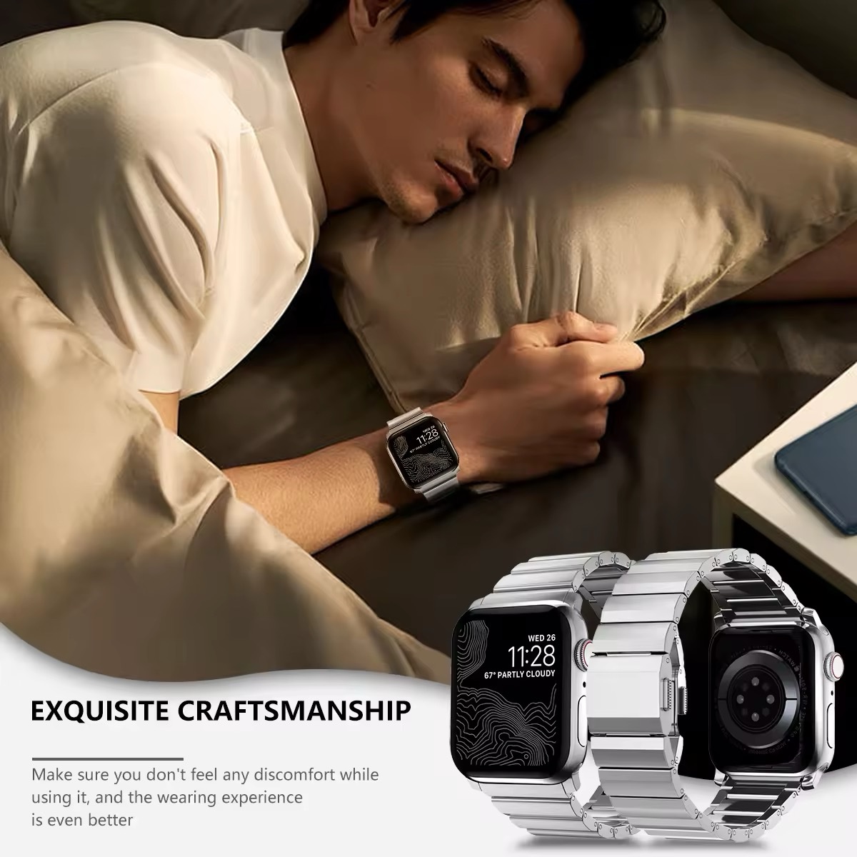 Premium Stainless Steel Apple Watch Strap Upgrade your style with a durable, lightweight stainless steel strap. Compatible with Apple Watch Series 10-1, Perfect for any occasion, this sleek band ensures comfort and elegance. (Watch not included.)