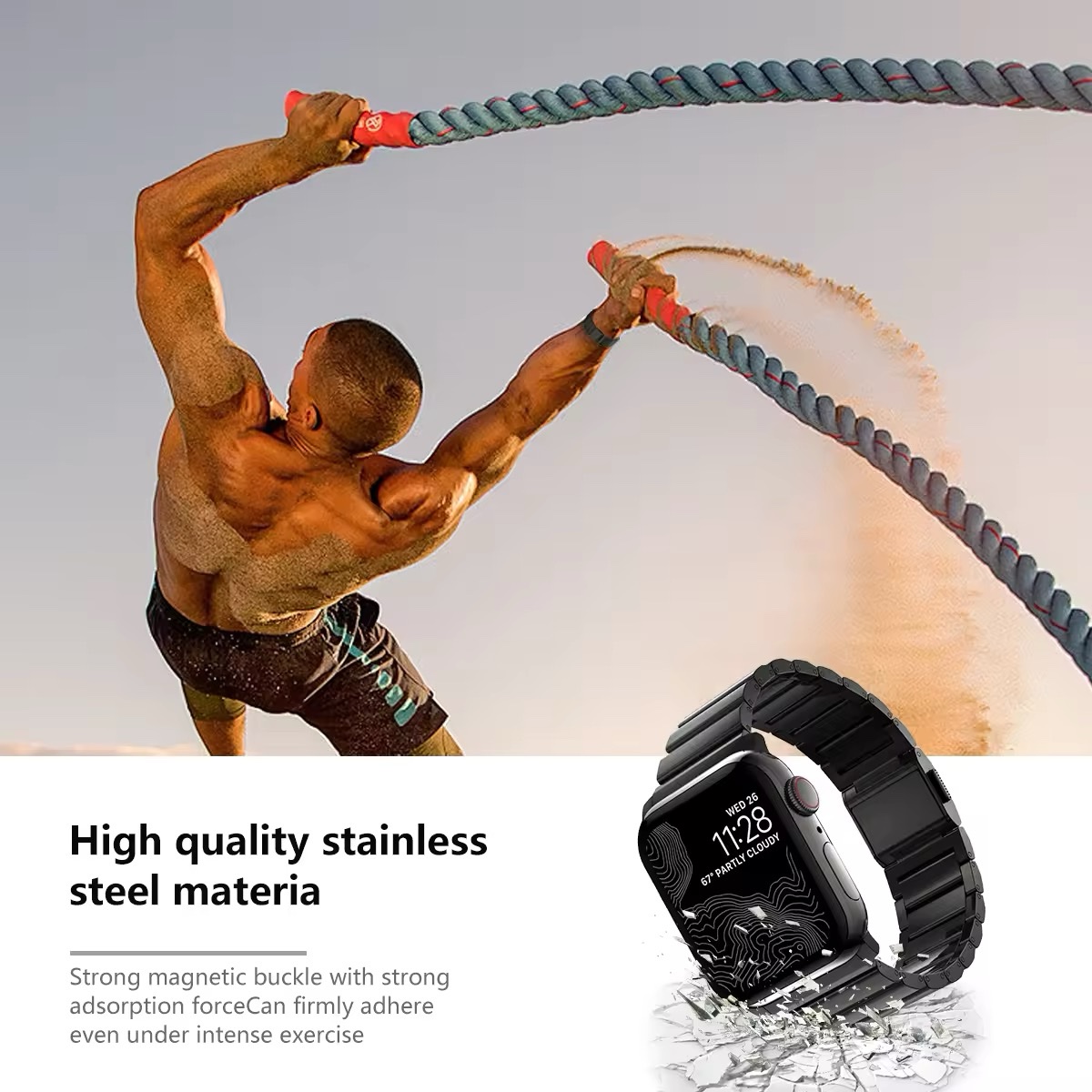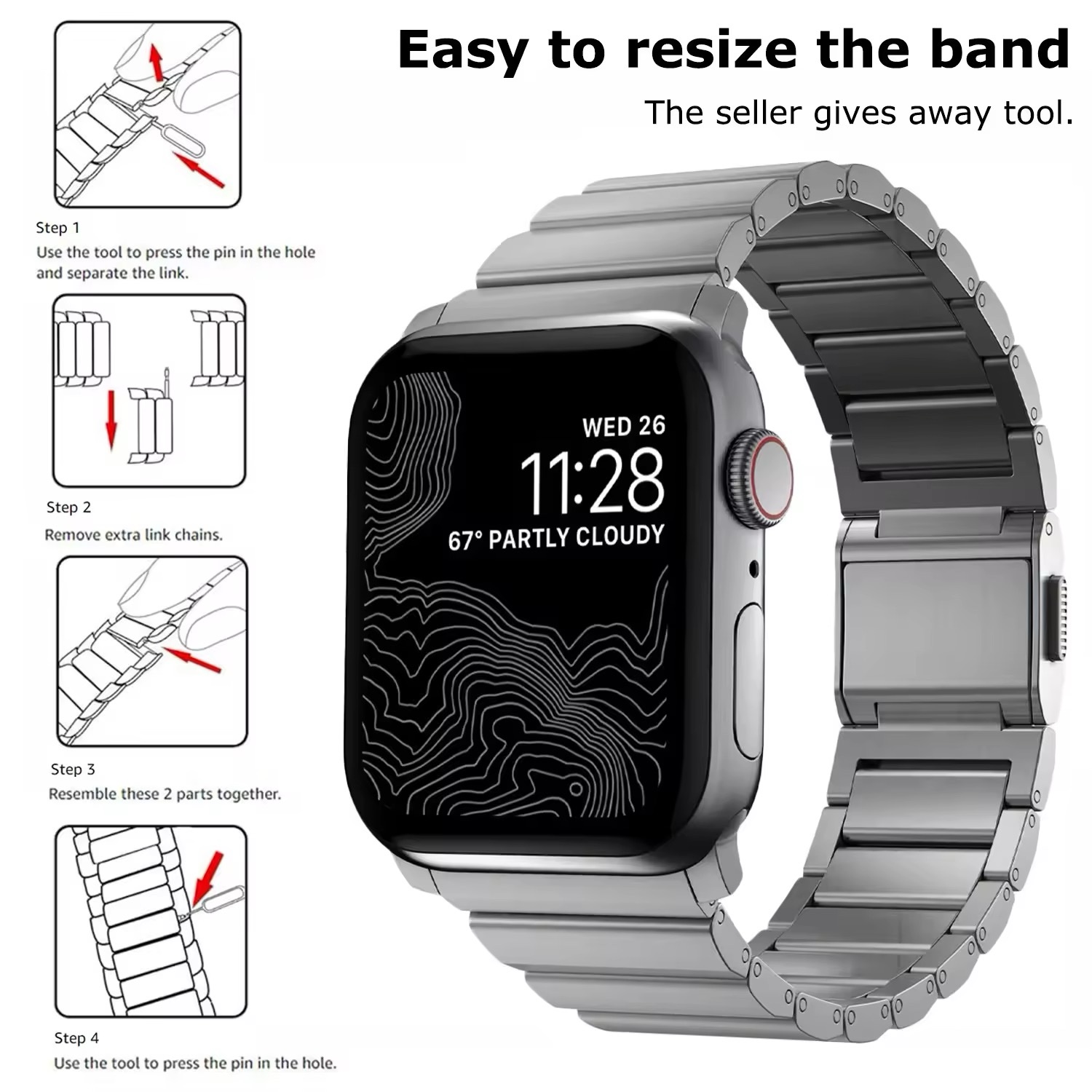 Made of high-quality stainless steel, this watch strap is durable and long-lasting. - Compatible with Multiple Apple Watch Sizes