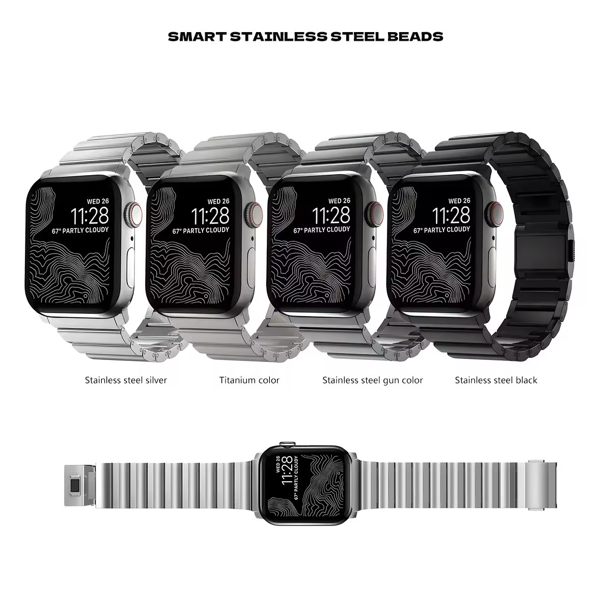 Looking for a premium stainless steel strap for your Apple Watch? Our sleek and durable metal bracelet bands are designed to fit various Apple Watch sizes, including 45mm, 49mm, 44mm, 46mm, and 42mm. Perfect for the latest Apple Watch Series 10, Series 9, and earlier models. Upgrade your style and ensure a perfect fit for any occasion.