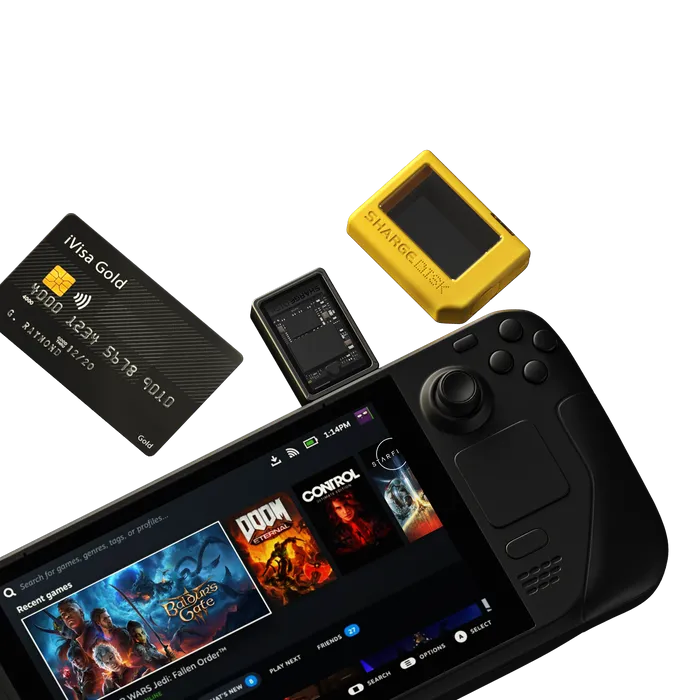 - Cable-free with USB-C Male Port. Throw away those tangling cables while you are playing with consoles or shooting with cameras. SHARGE Disk is cable-free with true portability.