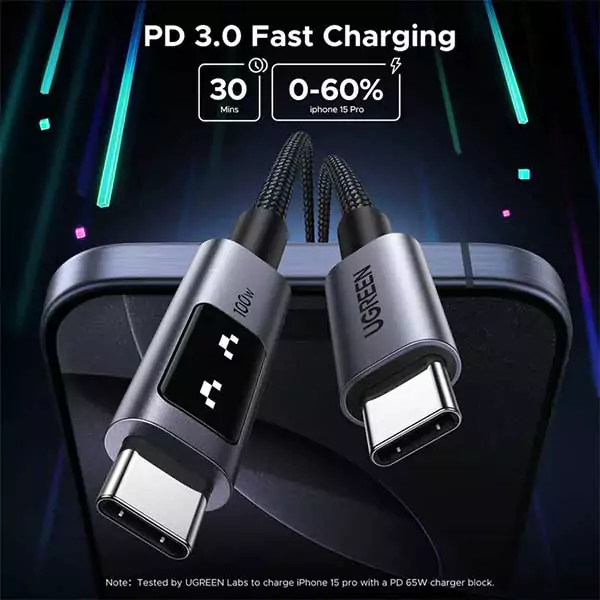 UGREEN L509 Uno USB-C to USB-C PD Cable delivers 100W fast charging and reliable data transfer with a durable braided design, ensuring safe and long-lasting performance.
