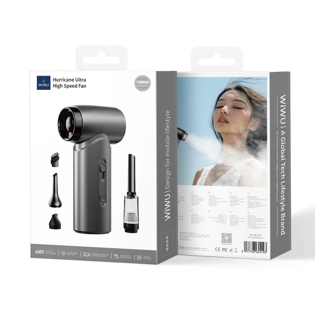 WiWU FS015 5 in 1 Ultra Speed Handheld Portable Fan is a compact and powerful cleaning tool is designed to tackle dust and debris in a wide range of everyday scenarios. Whether you’re maintaining your keyboard, camera, laptop, or even your car interior, this device makes cleaning effortless and efficient. It features five interchangeable nozzle attachments that allow you to reach tight corners and delicate surfaces with ease, making it highly versatile for various cleaning tasks.